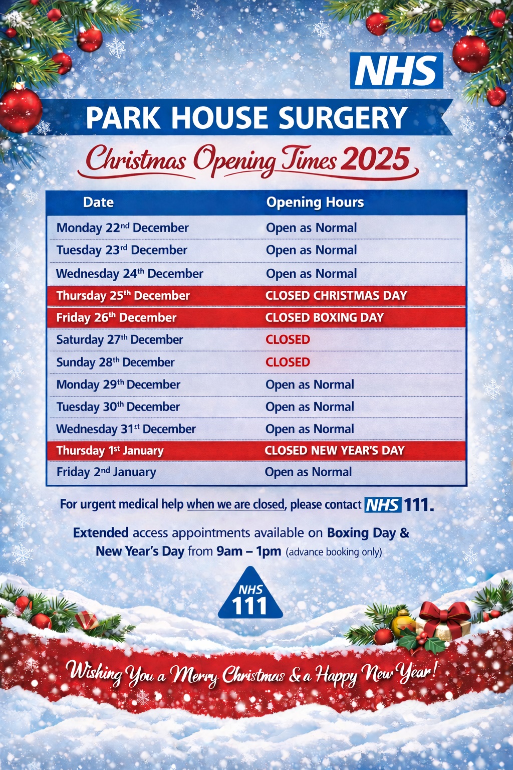 We are still running Extended Access clinics, where you can see GPs, ANPs, and Nurses, when we are closed. Please speak to our reception team to book those appointment. These appointments can only be pre booked in advance.